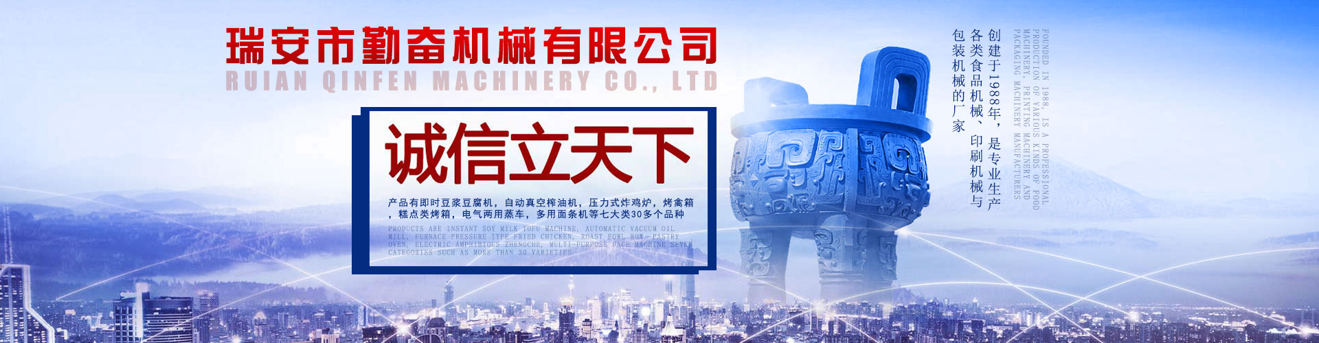 瑞安市勤奮機械有限公司創(chuàng)建于1988年/食品機械定制專家